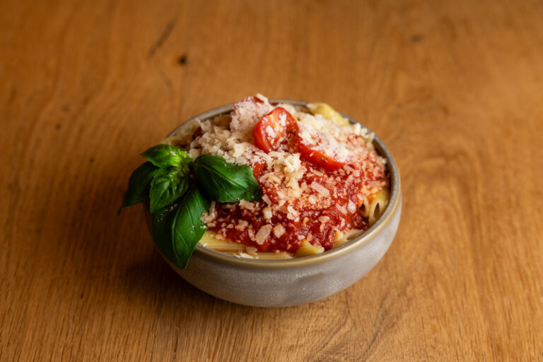 De klassieker der klassiekers, met een eigen twist. Heerlijke tomatensaus met een goede pittige toets van rode chilipepers, look en een hint basillicum